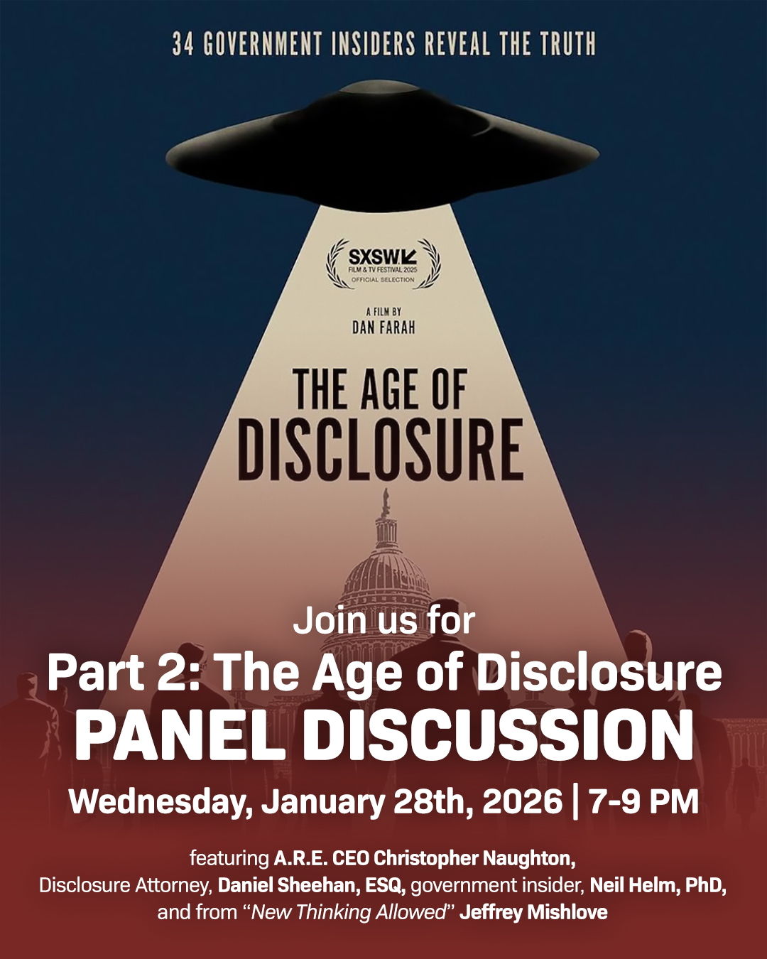 Part 2 of our Age of Disclosure expert panel features Edgar Cayce A.R.E. CEO Christopher Naughton, renowned UAP disclosure attorney Daniel Sheehan, Esq., and special guest Jeffrey Mishlove of New Thinking Allowed. The discussion also includes Neil Helm, PhD making his first public appearance to share insights from years of service with a top-secret government group referenced in The Age of Disclosure documentary.